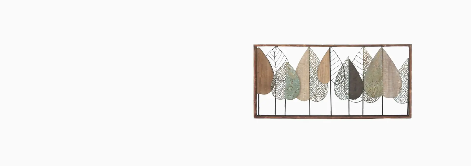 Brown Wood Varying Texture Leaf Wall Decor with Green and Black Metal