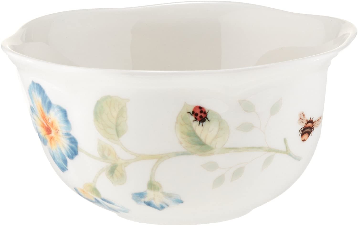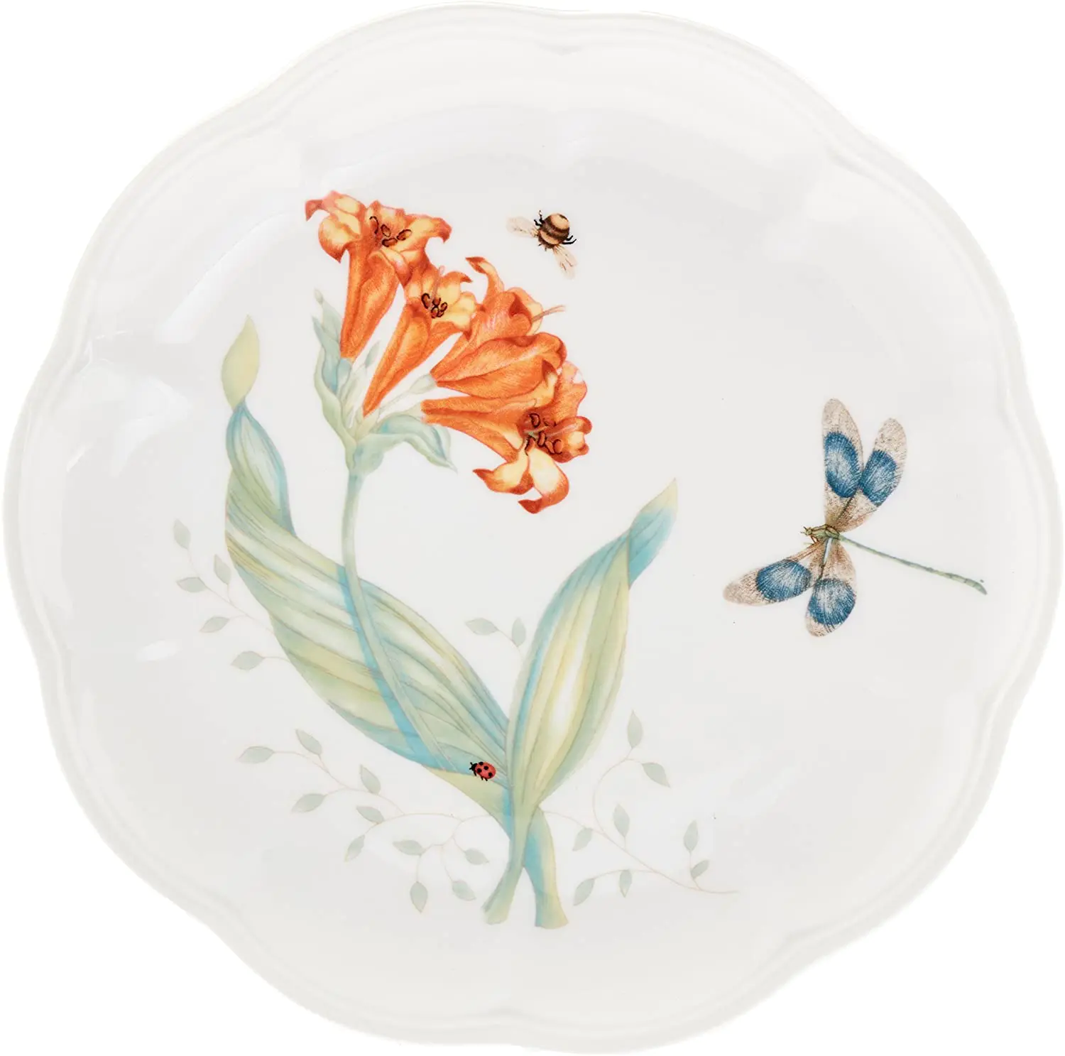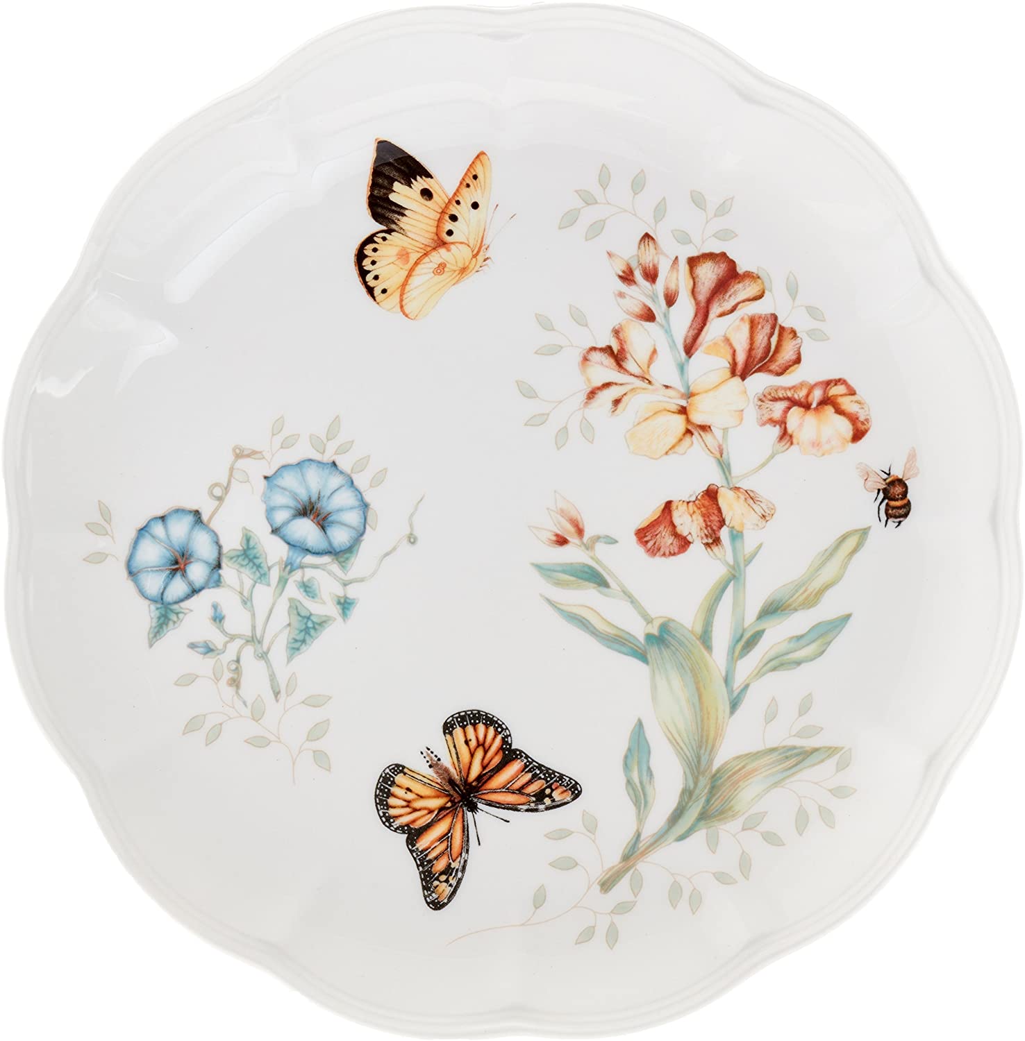 • Florals and butterflies rendered in exquisite colors adorn each scalloped piece