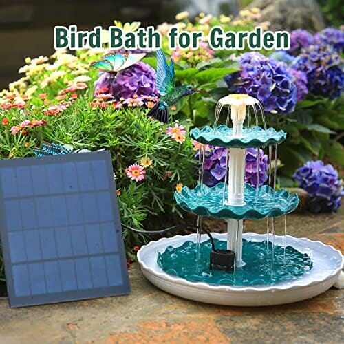 • Bird Bath Set ?C 3.5W solar fountain with 3 tiered bird bath, combo set for bird bath, easy to assemble and clean up. You can use it as a complete bird bath set, you can also put it in the bird bath bowl as an additional decoration. Ideal patio decoration for attracting birds.
