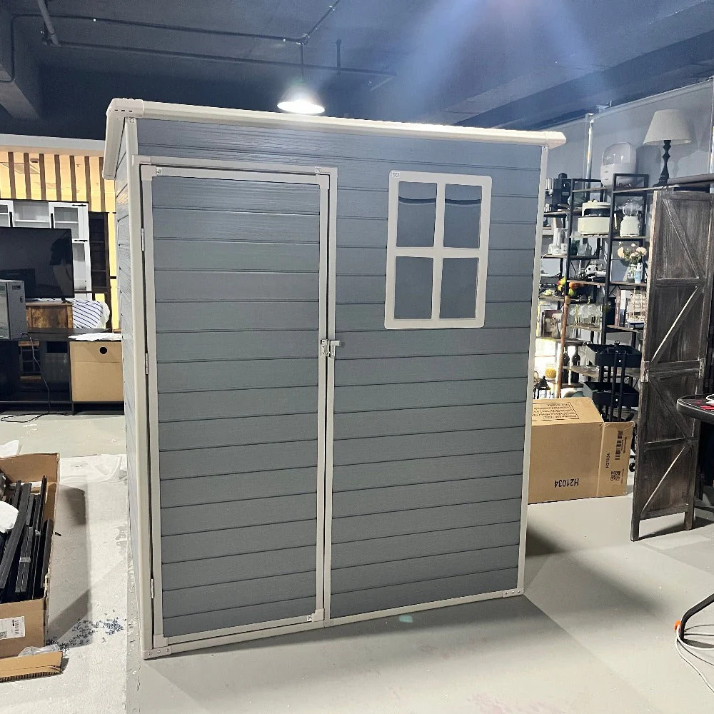 - The Window and Sloped Roof😕The resin storage shed features a window providing natural lighting and allowing for proper air circulation in the shed as well as preventing stuffiness and odors that can occur in enclosed spaces.