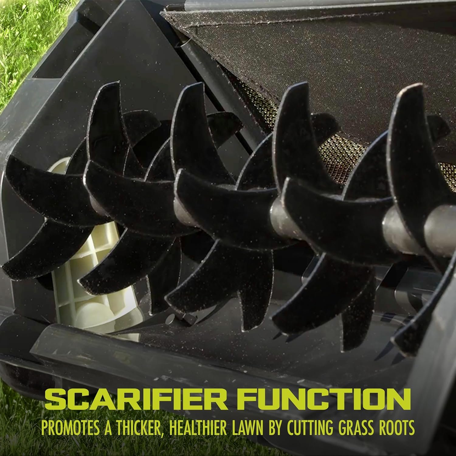 • [SCARIFIER]: Function to cut grass roots for thicker growth, healthier lawns