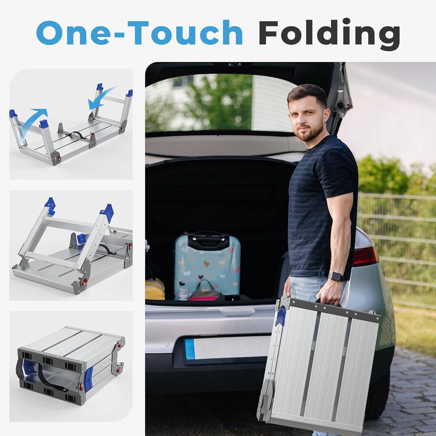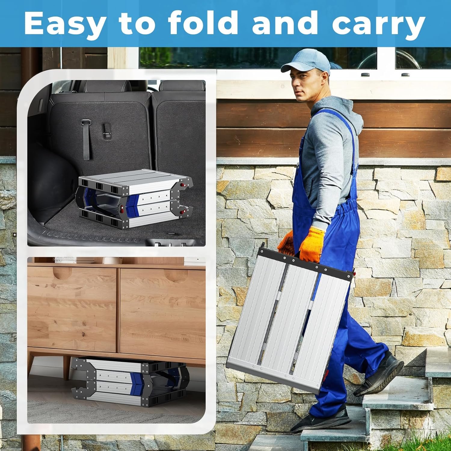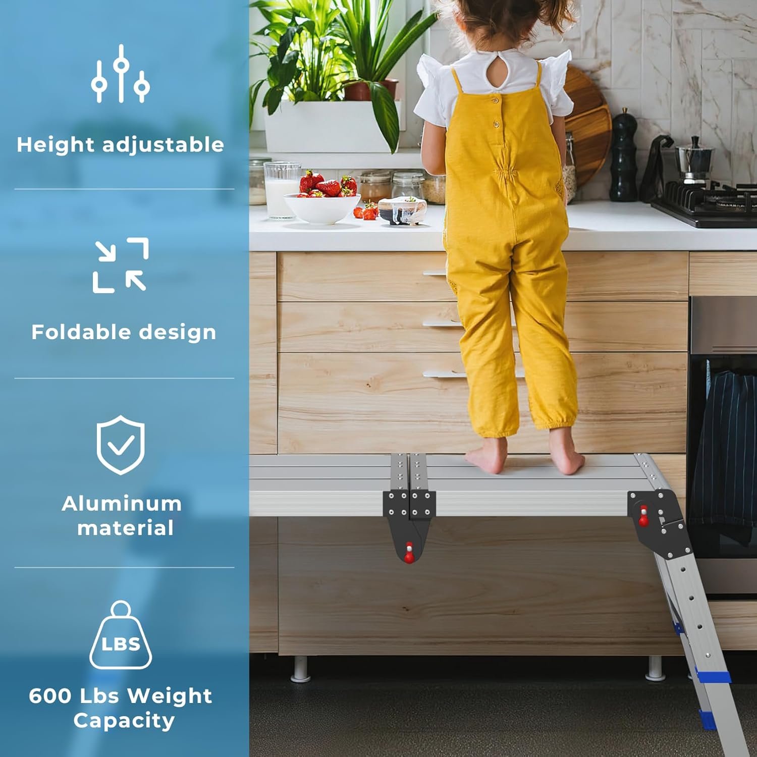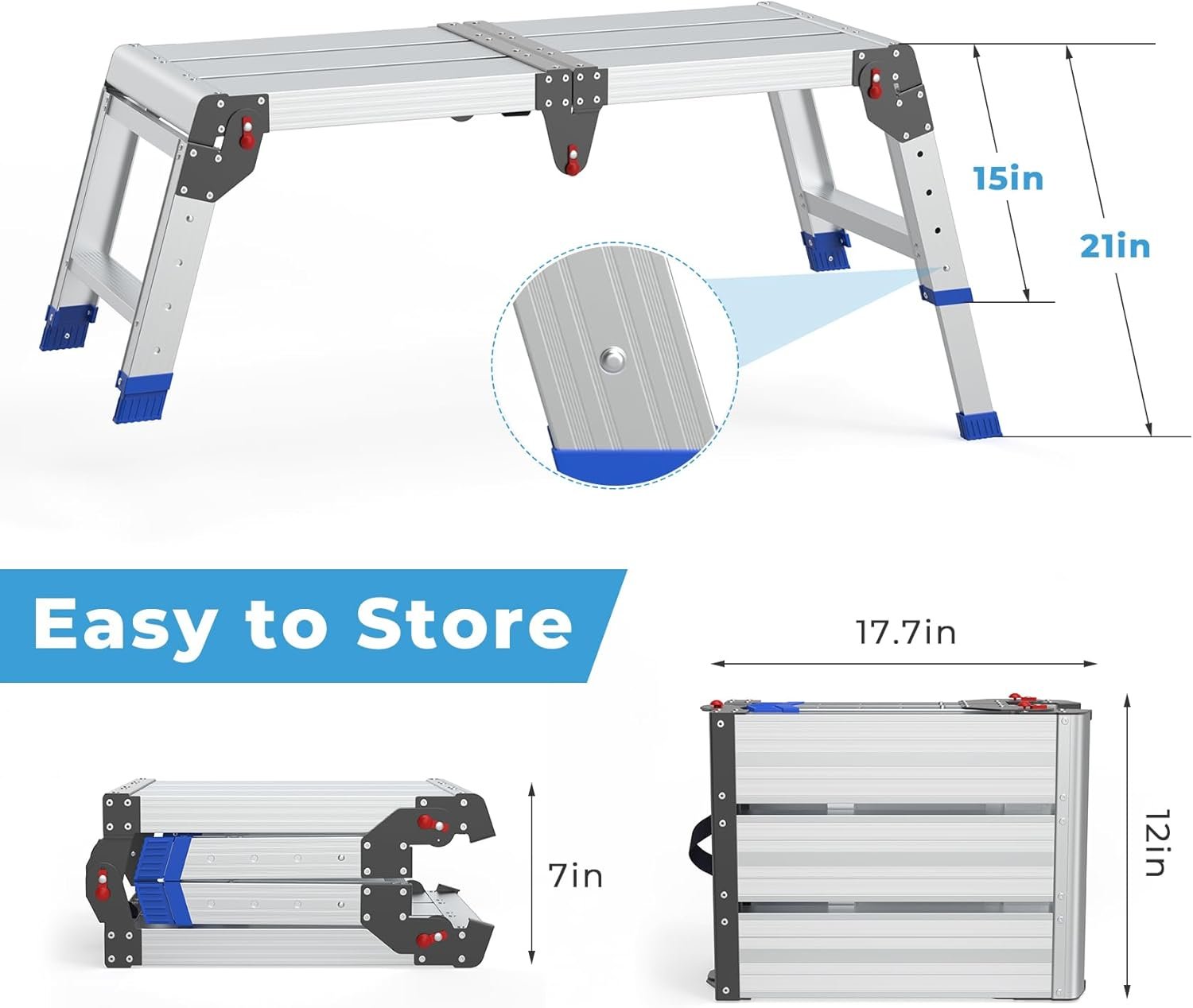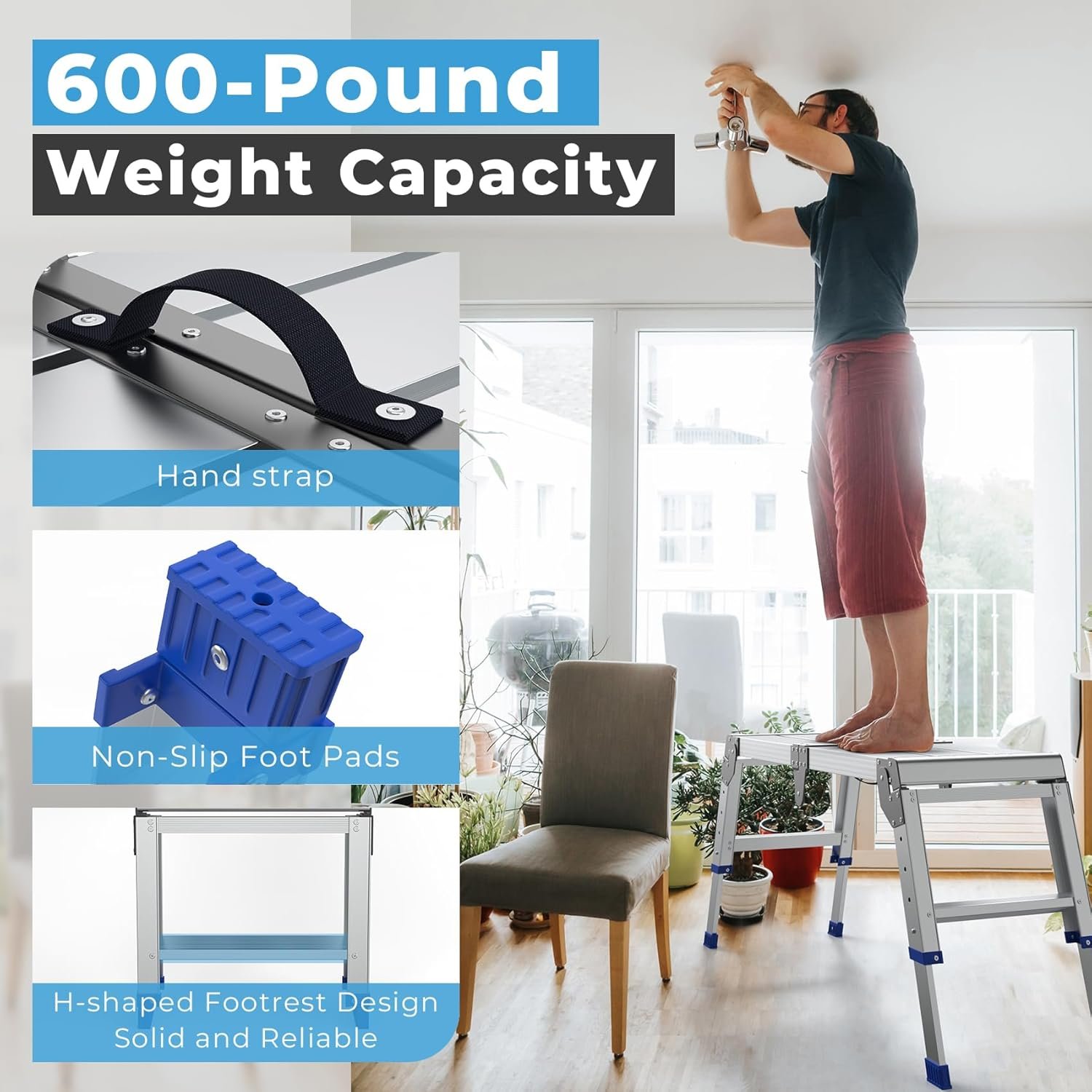 - PREMIUM DURABLE ALUMINIUM: Our folding step stool are made from top quality aluminium to ensure rust and corrosion resistance. With an impressive weight capacity of up to 600lbs, our platforms can effortlessly handle the weight of heavy equipment, materials and tools in a variety of scenarios.