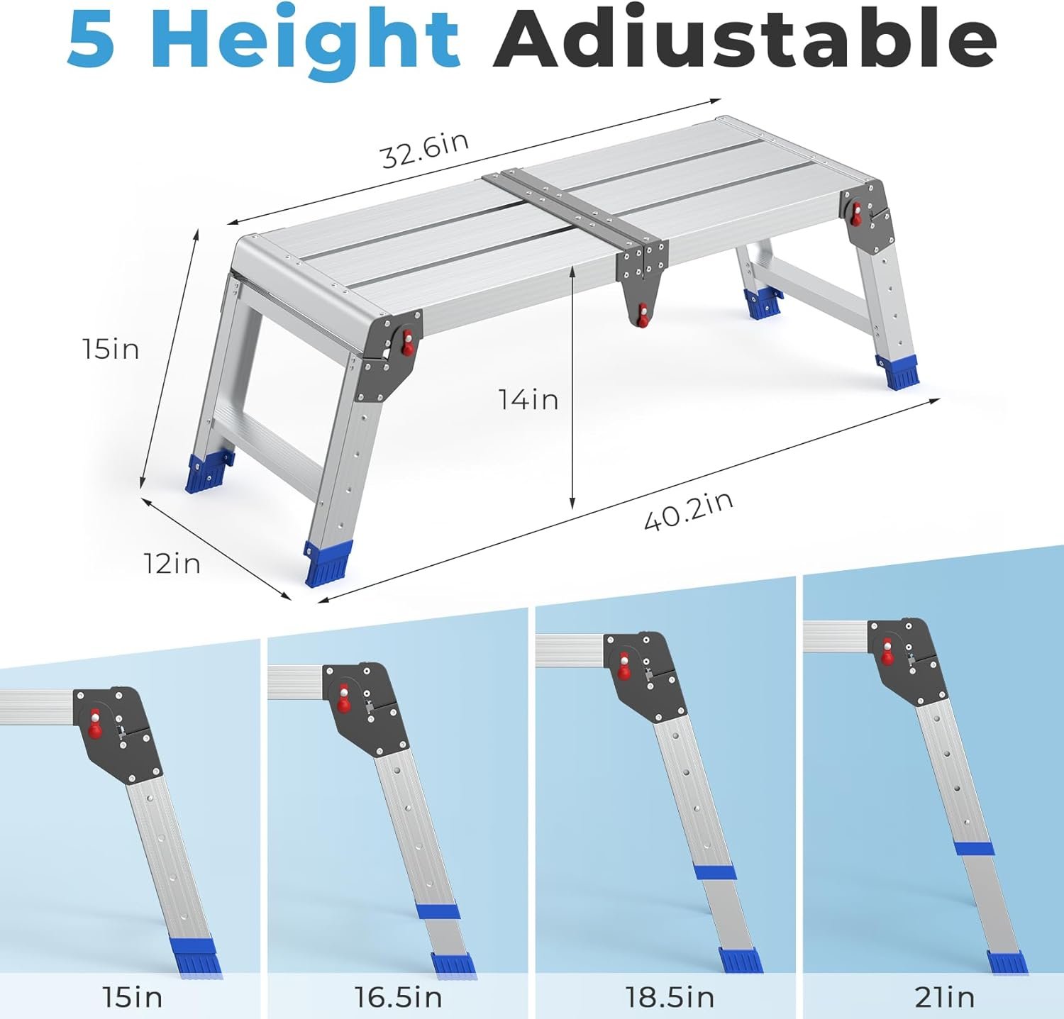 - VERSATILITY FOR APPLICATION SITES: The adjustable work platform allows you to access hard-to-reach areas without the need for ladders or scaffolding.The H-shaped footrest design is very convenient for middle-aged people, especially the elderly. It is suitable for a variety of indoor and outdoor applications, including outdoor, fishing, home projects, vehicle washing and other maintenance work that reaches high places.