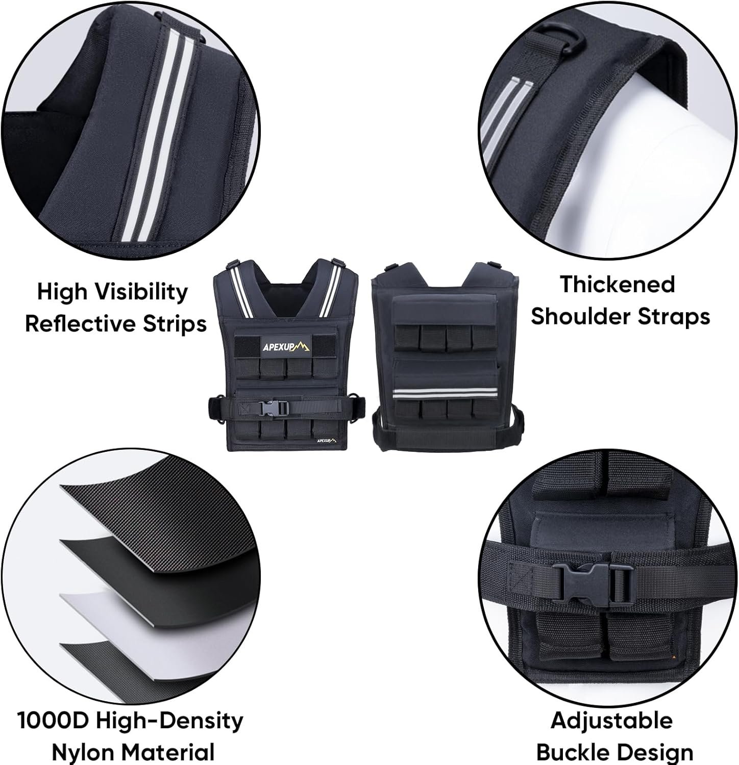 APEXUP Adjustable Weighted Vest with Reflective Stripe