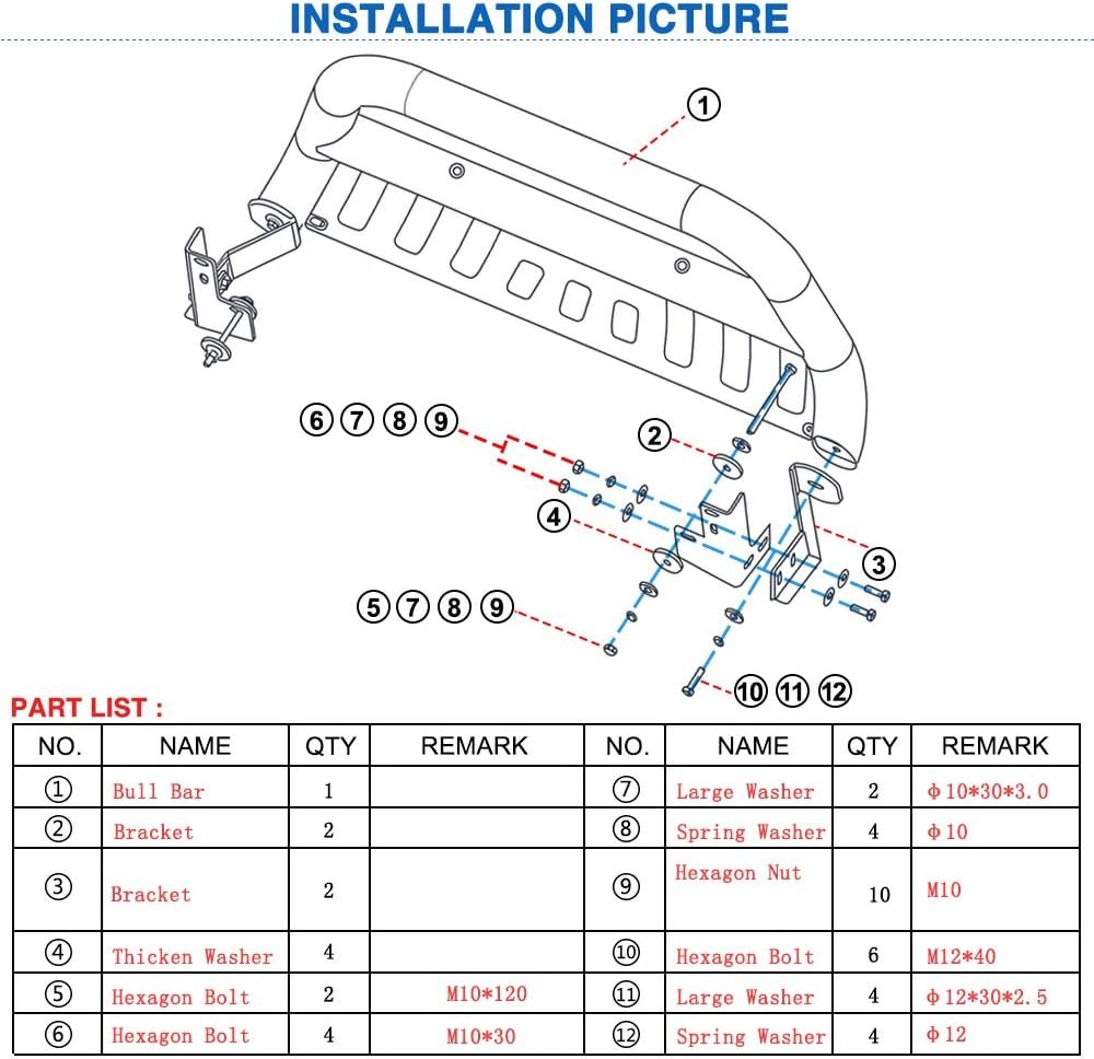 - Easy installation: Bolt-on installation with no drilling required; Equipped with all mounting hardware and installation instructions, so set up can be conveniently performed in a home garage with common tools