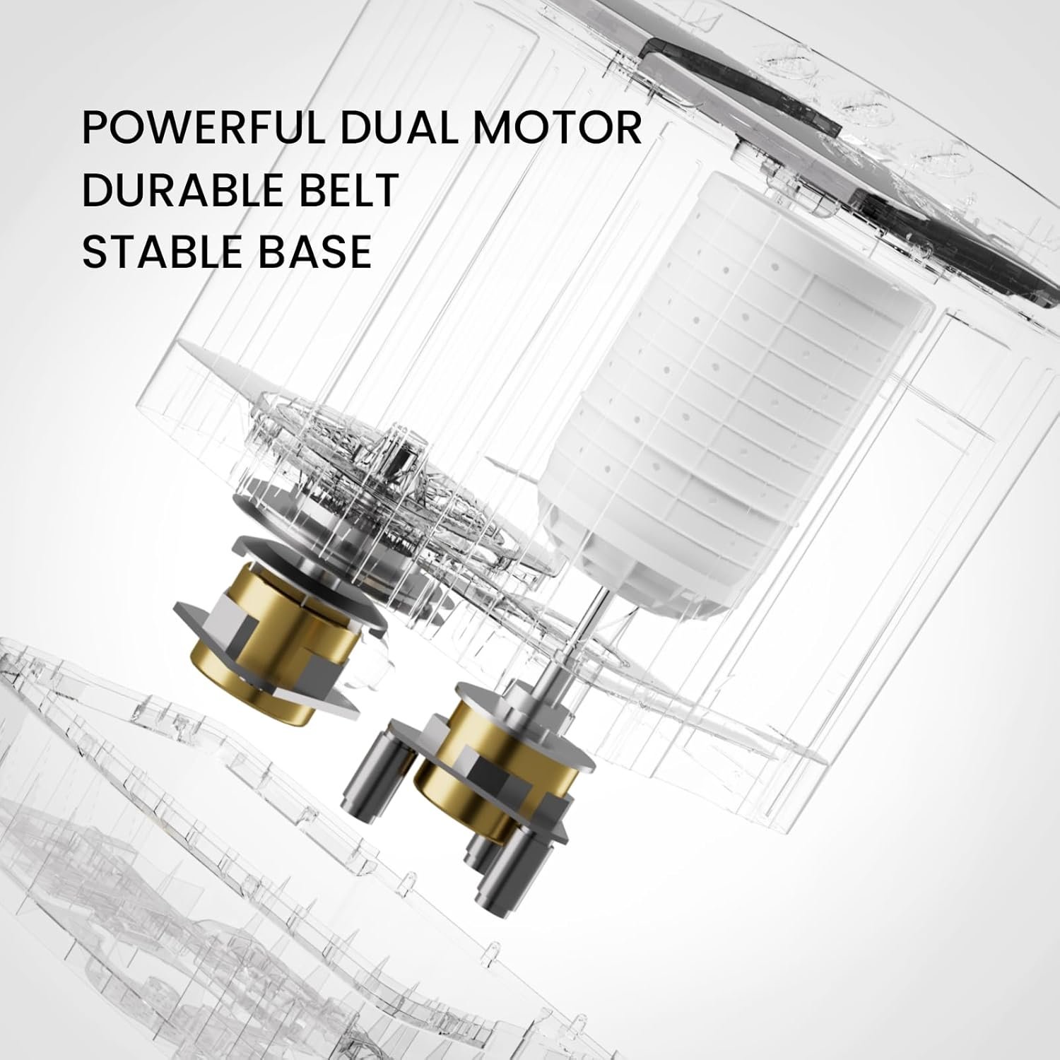 - [Powerful Motor & Secondary Cleaning]: 1700 rpm Dual Motor Portable Washing Machine. The mini washing machine and dryer design feature 360?? scrolling to clean your laundry more efficiently. The rotating bucket allows for a secondary cleaning to remove residual soap.