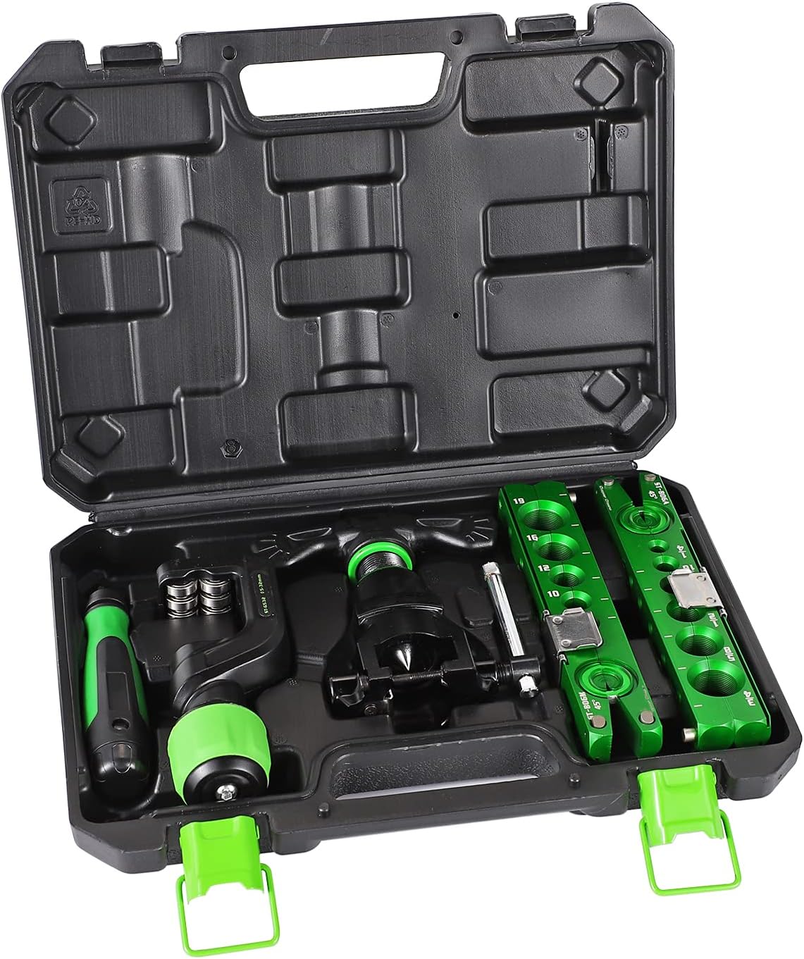 • [5 in 1 Kit] – This flare tool set includes the gantry * 1, millimeter flaring clamp * 1, inch flaring clamp * 1, pipe cutter * 1, burr trimming knife * 1. It includes all the basic flaring tools.