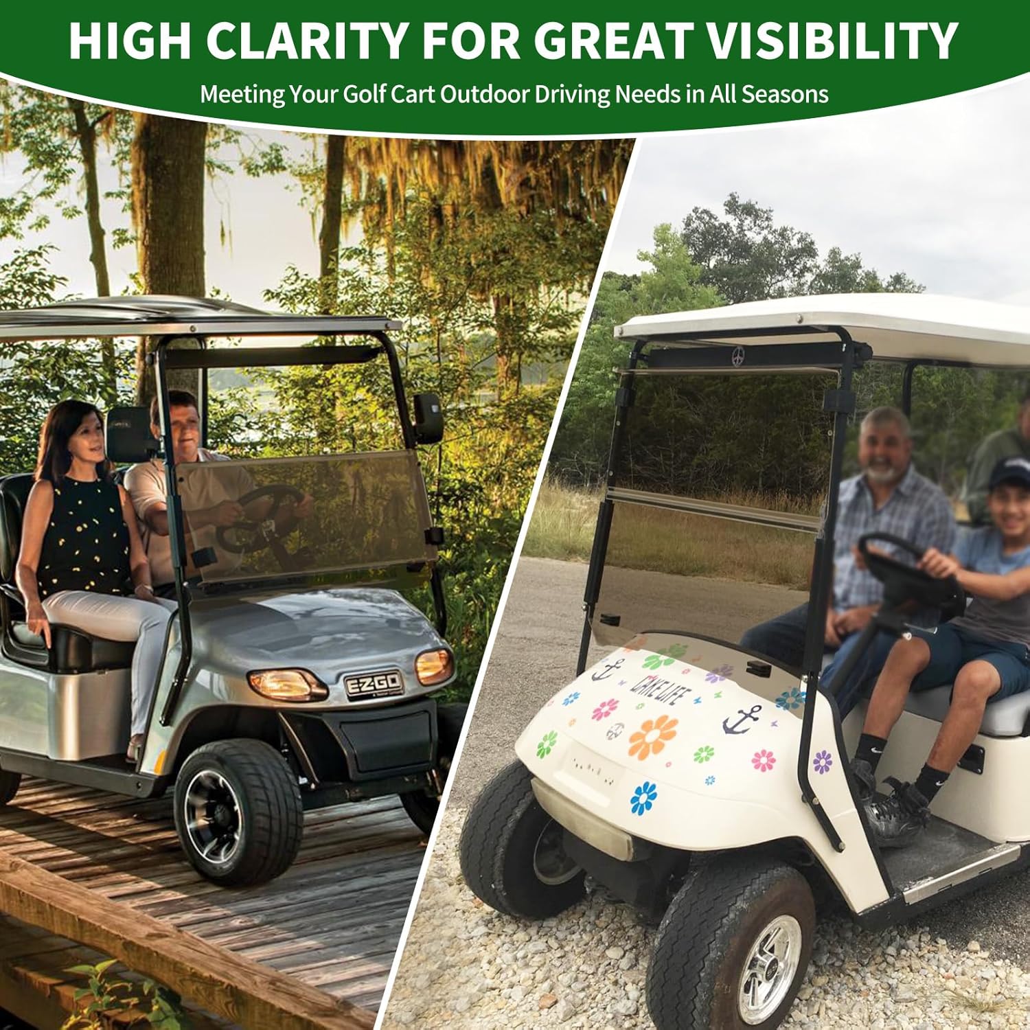 - 3/16″(5MM) Durable Acrylic: Made of high-density shatter and crack-resistant acrylic material, which is thicker than ordinary ez go golf cart windshield, have high strength impact resistance and durability.
