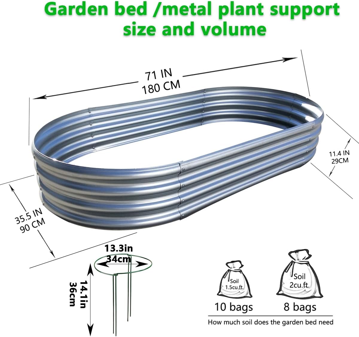 • Galvanized garden beds outdoor with metal plant stakes, you can not only grow potatoes, sweet potatoes, flowers, herbs and other plants in your yard, patio, garden and greenhouse, it also comes with 2 sets (4 pcs) metal plant stakes that can provide support for pepper and tomato cage.