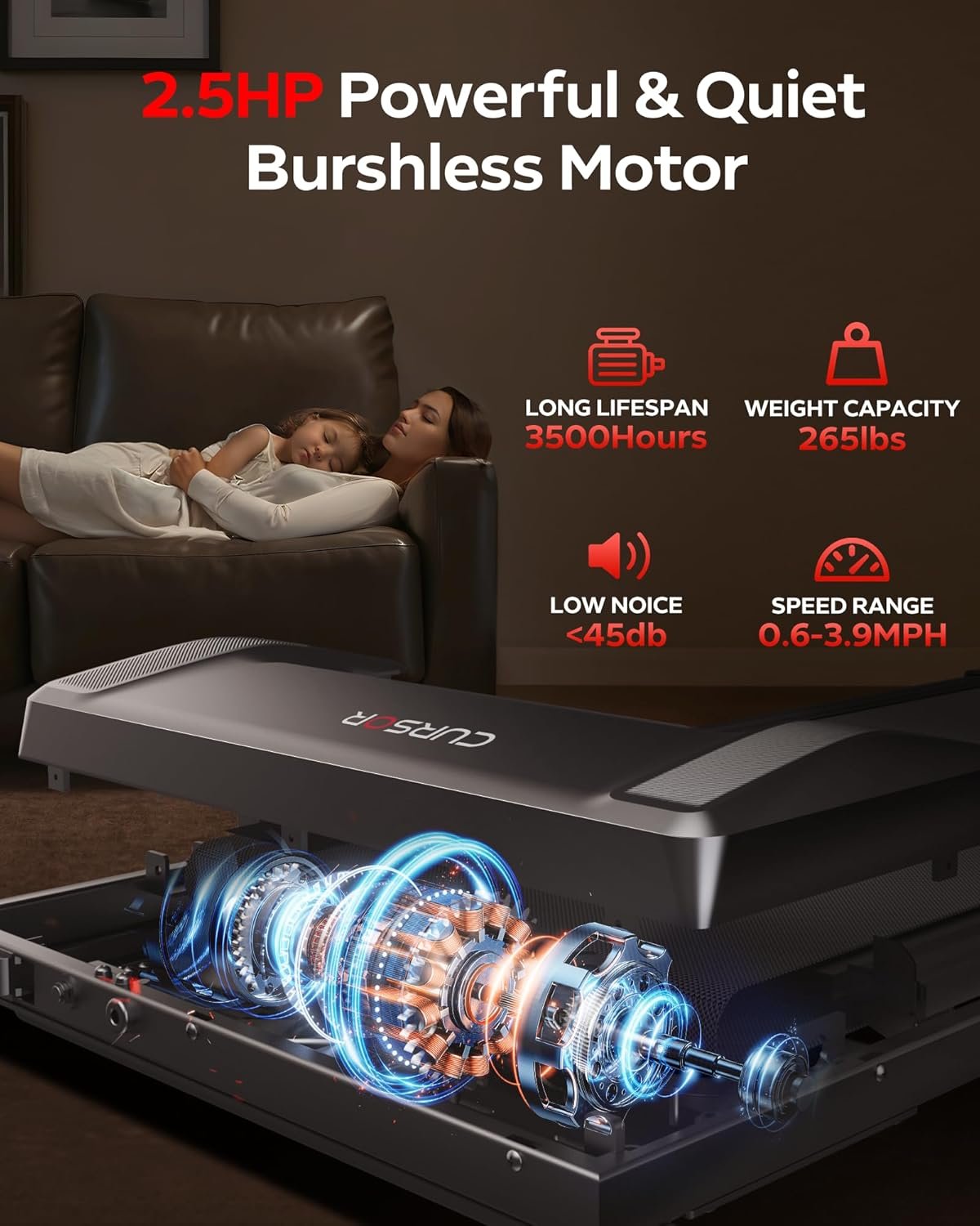 - Quiet & Powerful Brushless Motor: Equipped with a high-quality quiet and powerful brushless motor with max 2.5 HP, the Walking Pad delivers consistent and robust performance while maintaining whisper-quiet operation. Enjoy a peaceful workout session without disturbing family members or neighbors.