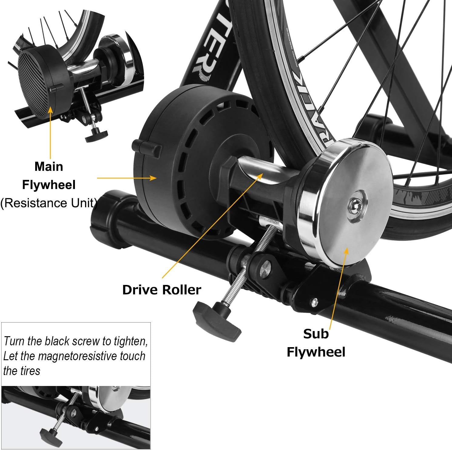 - ??6 Level Resistance Adjustable??: The trainer includes a drive-by-wire device so that you can change the resistance from your handle bars directly. You can adjust the magnetic resistor and switch the six resistance levels in seconds to meet your requirements about resistance and speed.