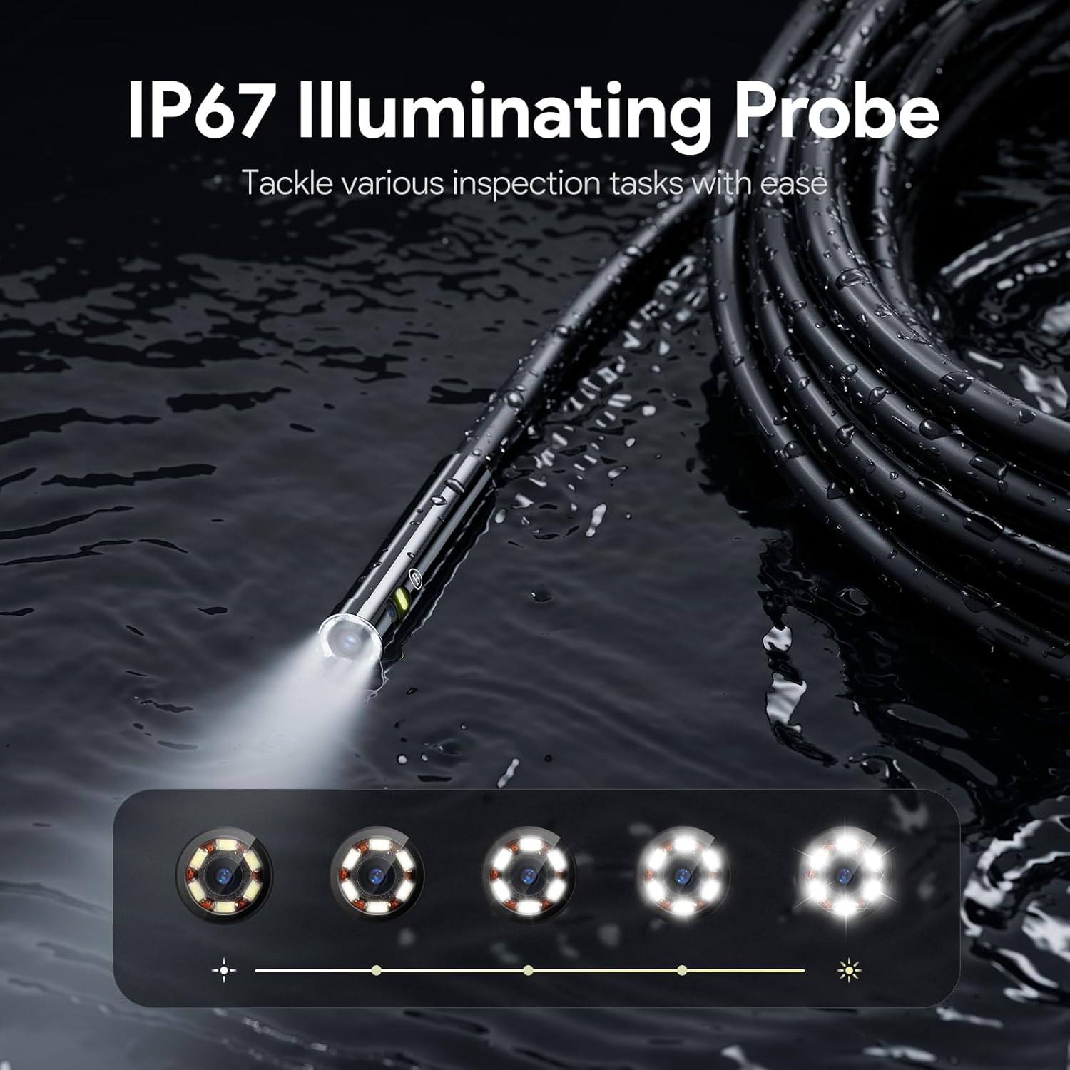 - Seamless Exploration of the Unseen: Reach deeper and navigate tighter spaces with ease, thanks to the DS560’s 16.5ft semi-rigid camera cable. This perfect blend of flexibility and stiffness allows for effortless control and lasting durability in diverse inspection settings. Featuring an IP67 waterproof lens, this plumbing camera is engineered for safe operation in wet and wild areas.