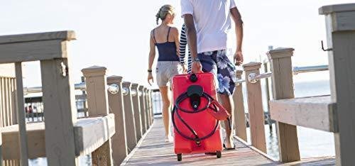 Binding: SportsRelease Date: 19-01-2007Details: Product DescriptionThe scepter flo N’ go Duramax 14 gallon portable fuel caddy is siphon based and manufactured from durable. high-density polyethylene. It is designed for industrial. commercial. and recreational applications and comes with a 10?? hose and hanger for easy storage. Made for use with gasoline. diesel. or kerosene fuels and is great to use with boats. generators. lawn tractors. snowmobiles. ATVs. and more.Amazon.comWhether your fuel needs include watercraft. hunting and camping. generators. backyard power equipment. or professional landscaping tools. the Duramax Flo ‘n’ Go fluid transfer pump and rolling gas can make refueling a snap. The Flo ‘n’ Go is made of a durable. high-density polyethylene material in red that safely holds gasoline. diesel. or kerosene fuels. When it comes time to refill. the pump’s patented Flo ‘n’ Go hand pump and pump holder handle takes over. letting you transfer fluids on level surfaces with minimal priming. And thanks to the dual mechanical shutoff valves at both the tank and hose. the tank’s disconnection is spill-proof. providing a safe fuel transfer for both you and the ecosystem. The tank includes a sizable 14-gallon/53-liter capacity and a 10-foot-long fuel hose. as well as a bolt-on hanger for convenient hose storage. And users will love the sturdy 6-inch wheels. which makes it a breeze to maneuver the tank over rough terrain. Other features include an ergonomically designed. heavy-duty top handle with extra-deep base unit handholds for transport; a UL-approved mechanically vented fill cap; and recessed grooves that provide nuisance-free strapping locations for safer transport. The Flo ‘n’ Go fluid transfer pump meets all DOT and UN transportation requirements.Package Dimensions: 33.3 x 16.5 x 13.1 inches