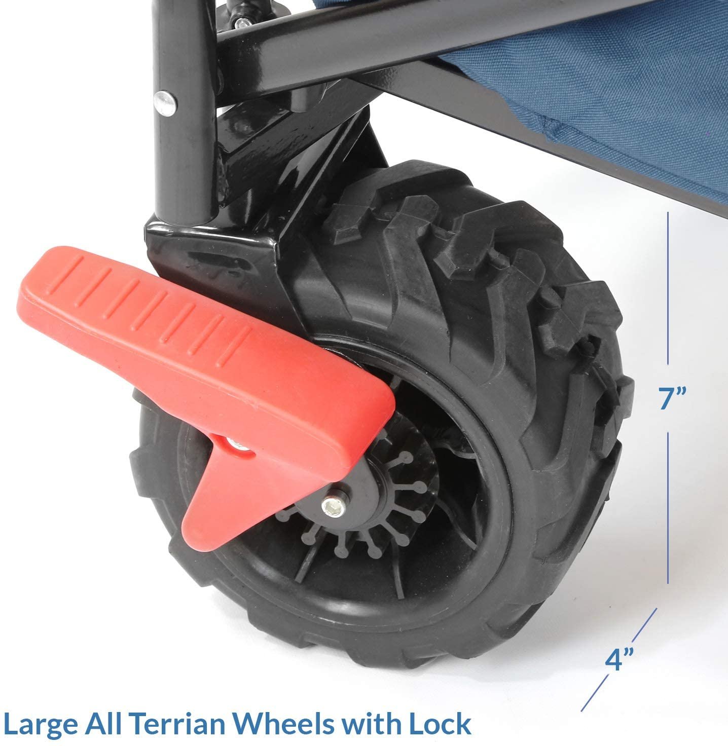 PERFECT FOR PARK & BEACH: Sturdy 4?? wide and 7?? tall all terrain wheels. 2 X 360 swivel Front wheels with locks. Perfect for trips to beach. garden. park. camping. outdoor sporting events