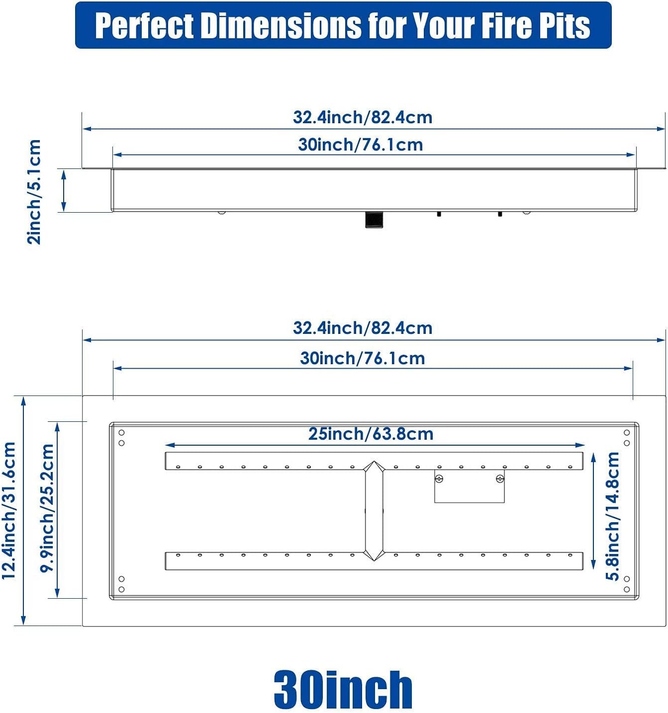 - [Dimension and Package] – 30″ x 10″ drop-in fire pit burner kit. The right DIY fire pit kit for your 30″ drop-in fire pits or fire tables. Including fire pit burner, fire pit pan, upgraded ignition kit with shut-off valve, non-whistle gas line, 0-20 PSI regulator hose, air mixer, igniter box and seal tape. Carefully well packed, there are protective cotton protect items to prevent bending during shipping. [Tips] – Igniter requires 1 AA battery to be installed, not included in kit.