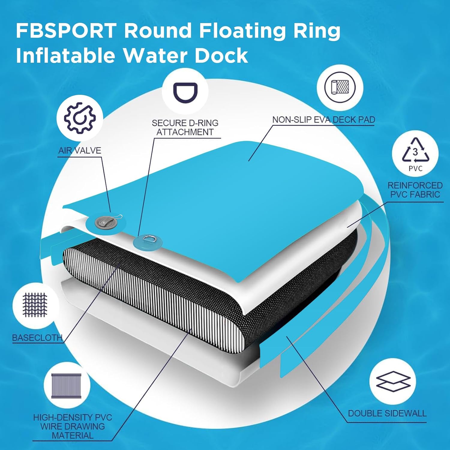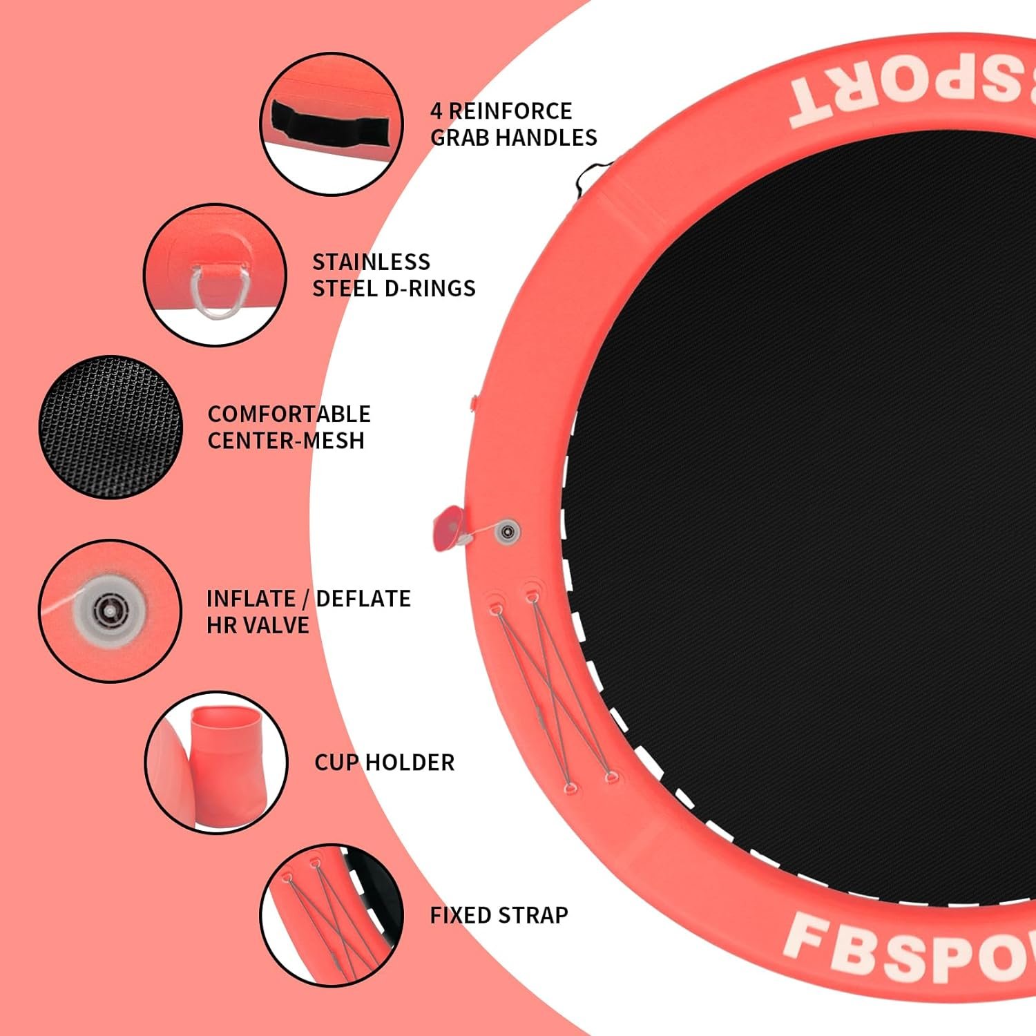 • Innovative Central Pool Design: FBSPORT round floating ringboasts a spacious 5ft round trampoline mesh pool, reinforced with nylon borders and elastic cords. Engineered from high-density PVC brushed fabric, it offers a non-slip and durable surface for stability and safety, allows immersing yourself in summer water sports.
