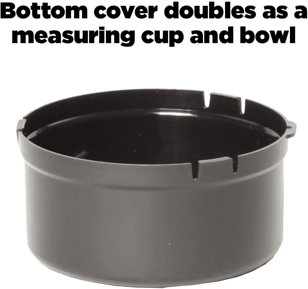 - The bottom cover doubles as a measuring cup and a bowl, saving space in your pack for clothes, gear, and food.