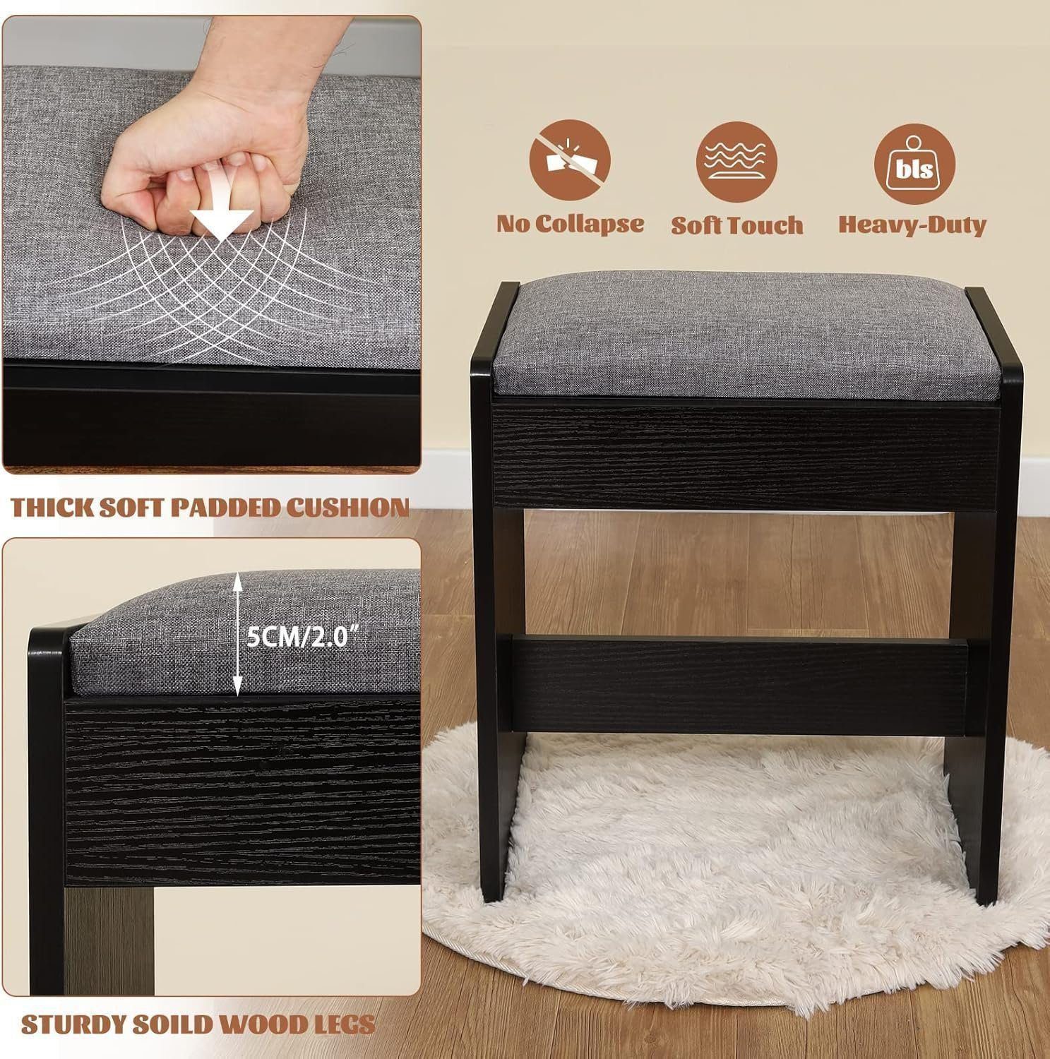 Vanity Stool & LED Light Mirror: The vanity table is equipped with a large mirror and 10 LED bulbs with 3 color modes and the brightness can be adjusted to meet your different needs in different environments, The stool with suitable height can meet the sitting posture of human body and make you more comfortable when making up.