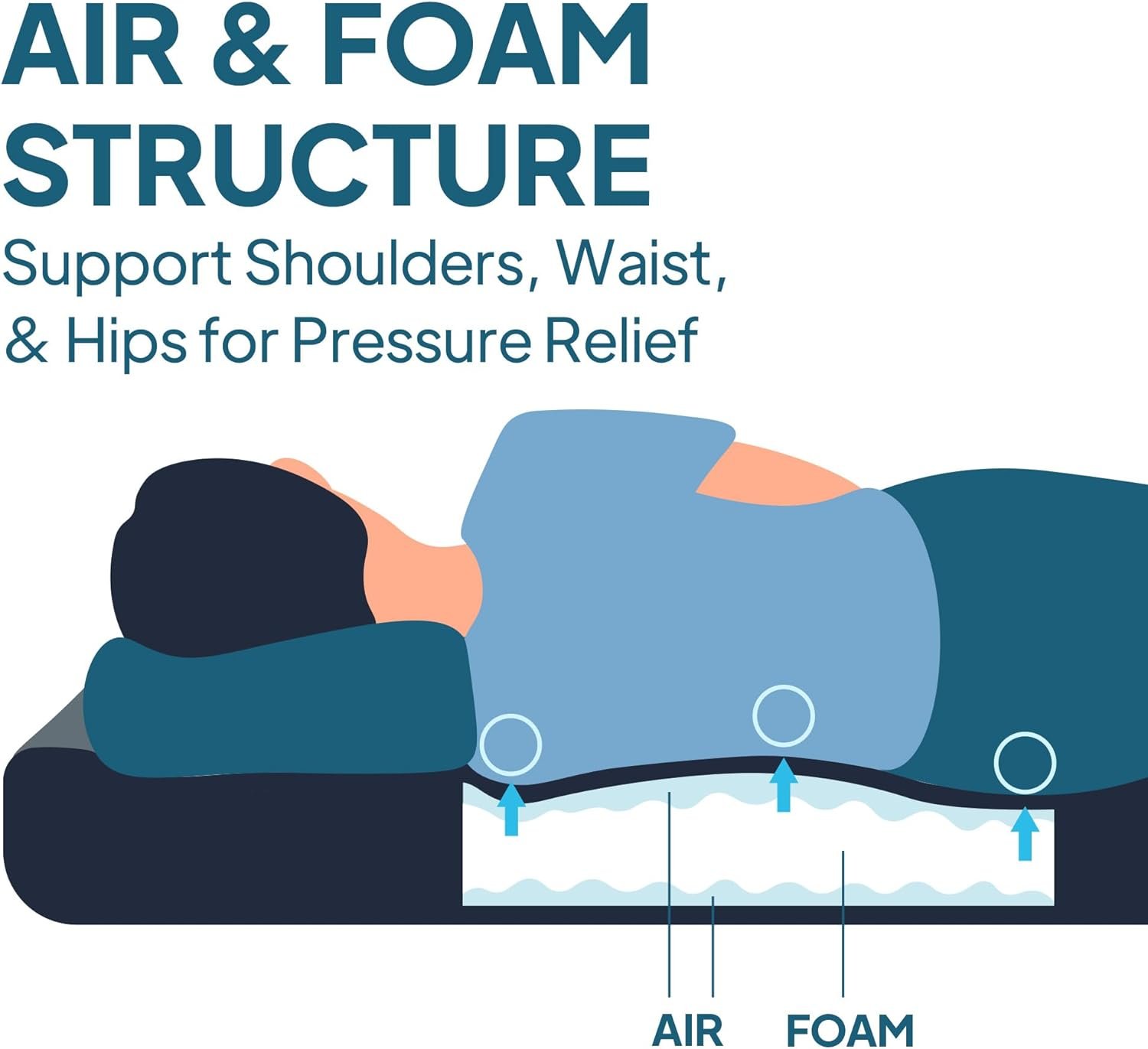 - ??Silent and Stable Support for Quality Sleep??The mattress provides a stable sleeping surface with minimal noise, ensuring that your movements won’t disturb your sleep or your partner’s. Unlike other air mattresses that may make annoying squeaking or rubbing sounds, this unique combination of air and foam construction keeps you comfortable and quiet throughout the night.