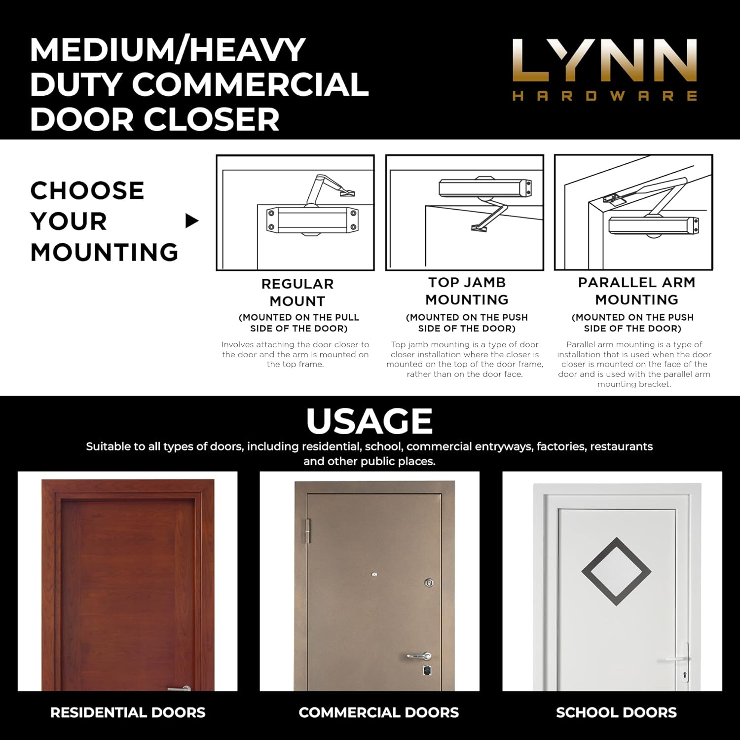 LYNN HARDWARE Medium/Heavy Duty Commercial Door Closer – US26D Aluminum