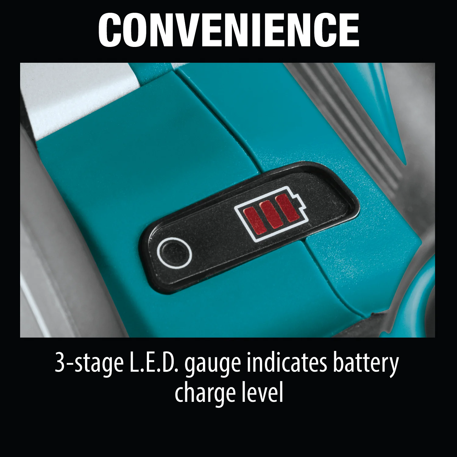 • CONVENIENCE?: 3-stage L.E.D. gauge indicates battery charge level