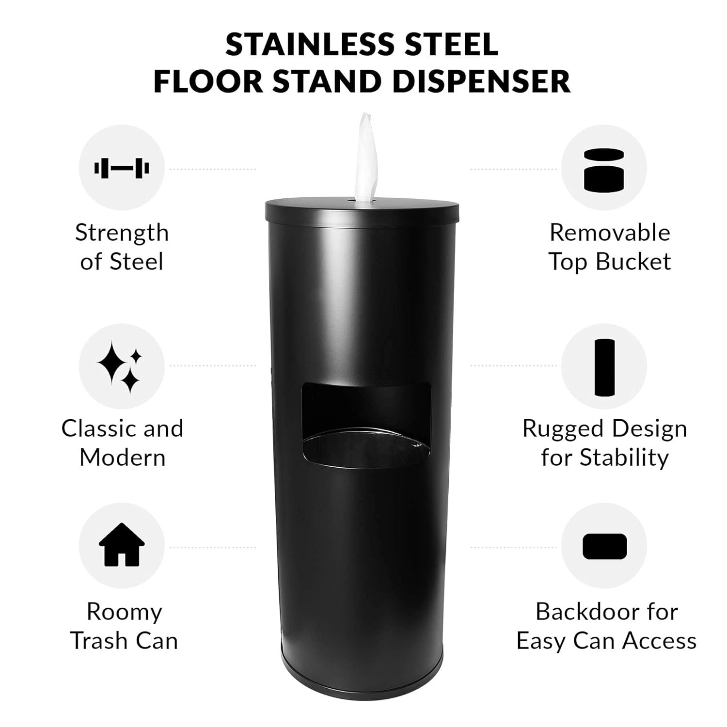 - MODERN BLACK POWDER-COATED STAINLESS STEEL DESIGN: sleek, stylish dispenser that is sturdy and ideal for any facility, including fitness clubs, schools, daycares, residential & commercial properties and health care facilities