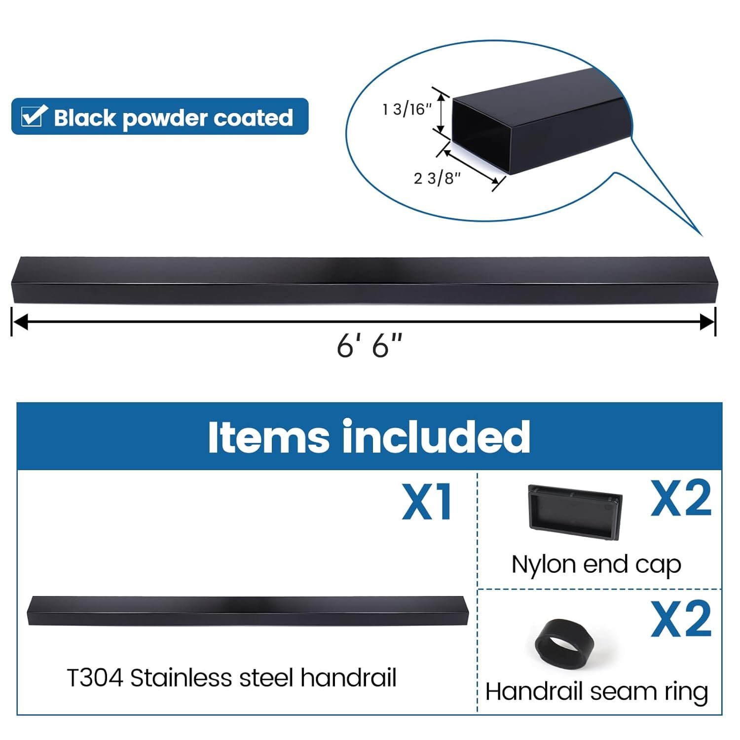 - Material difference – Please note that this black stainless steel handrail HT10 is not suitable for projects within 10 miles of the seaside or saltwater. If you need handrail with excellent waterproof and corrosion resistance. You can search Muzata aluminum handrails HL10 BPA to suit specific needs. Please check the model number to avoid mismatches