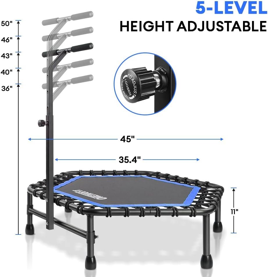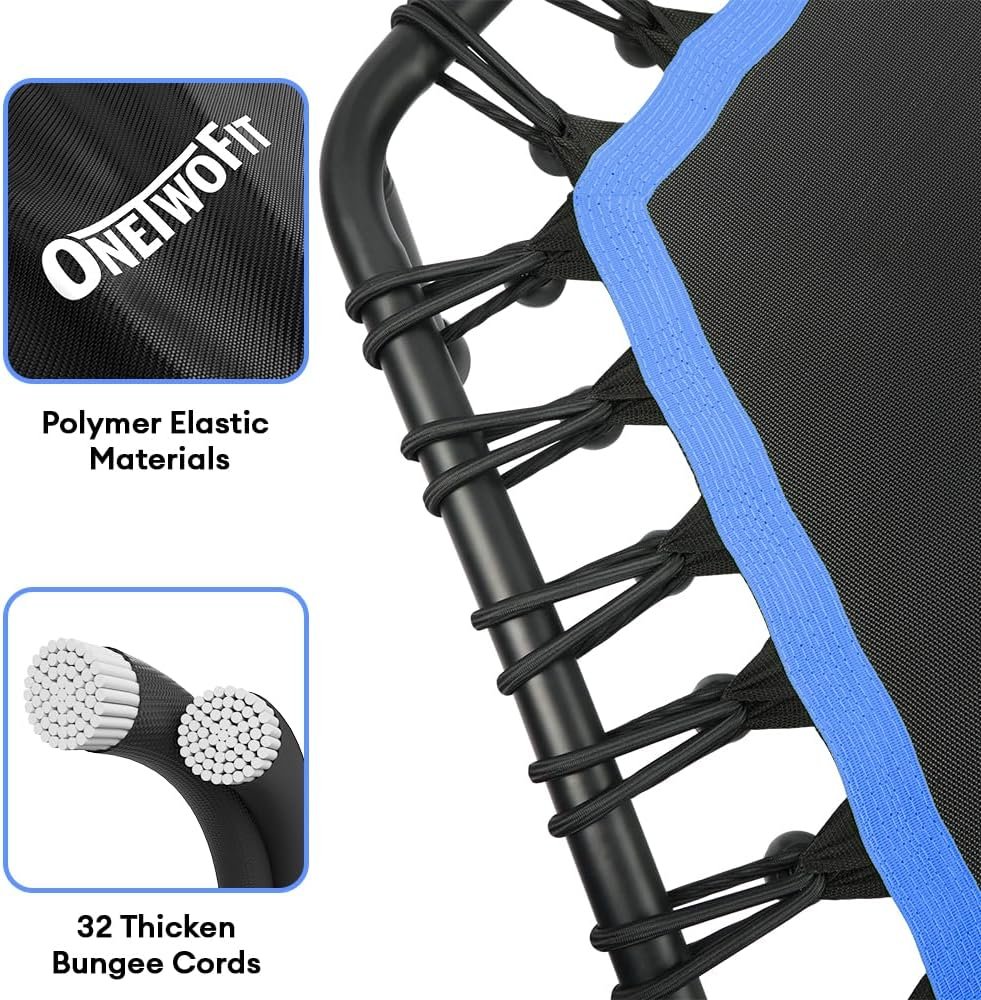 • HEAVY DUTY CONSTRUCTION – ONETWOFIT Fitness trampoline made of heavy steel, passes 3000 continuous jump experiments. Make sure you can jump for the long term. 42″ frame size gives you jumping more freedom.