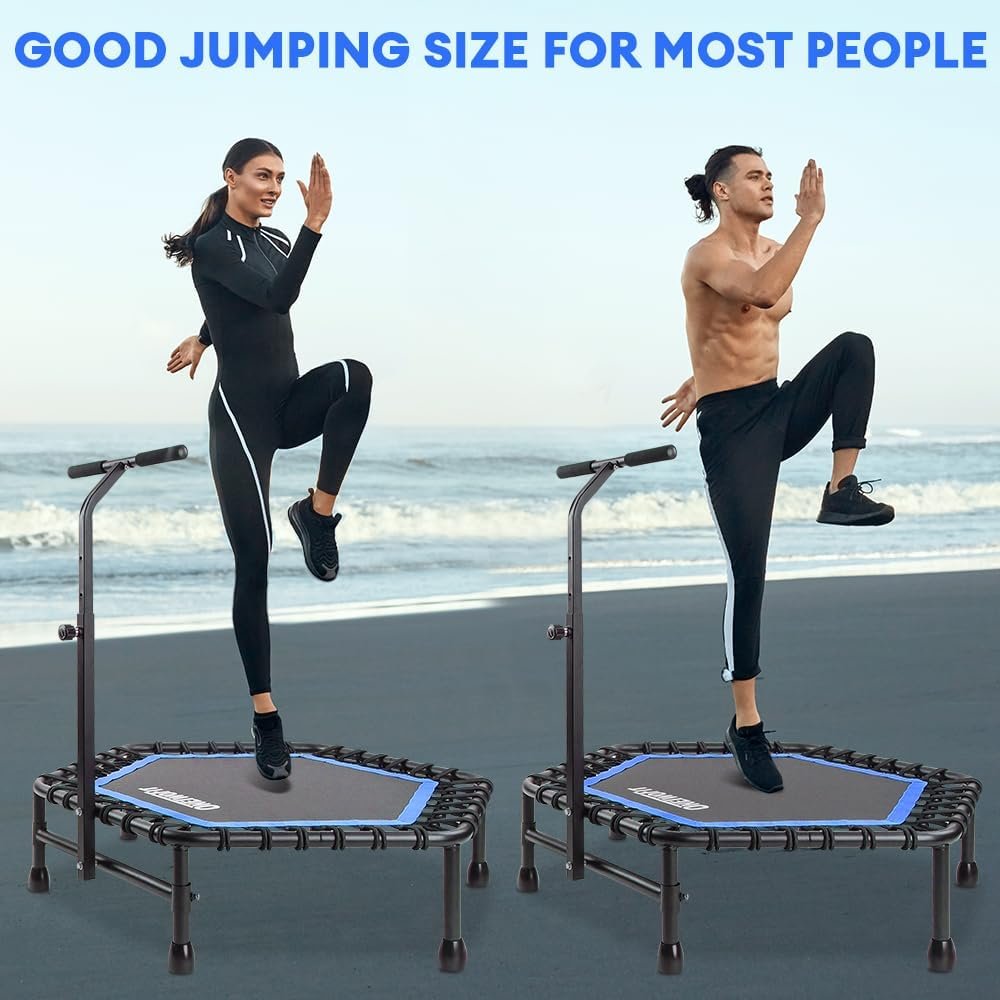 • QUIET DESIGN – bungee trampoline 95% less noise compared to spring trampoline. Perfect for indoor outdoor exercise, jumping on a mini trampoline for 10 Minutes equals 1 hour jogging, 30 minutes cycling, or 20 minutes swimming, a fun way to increase movement.