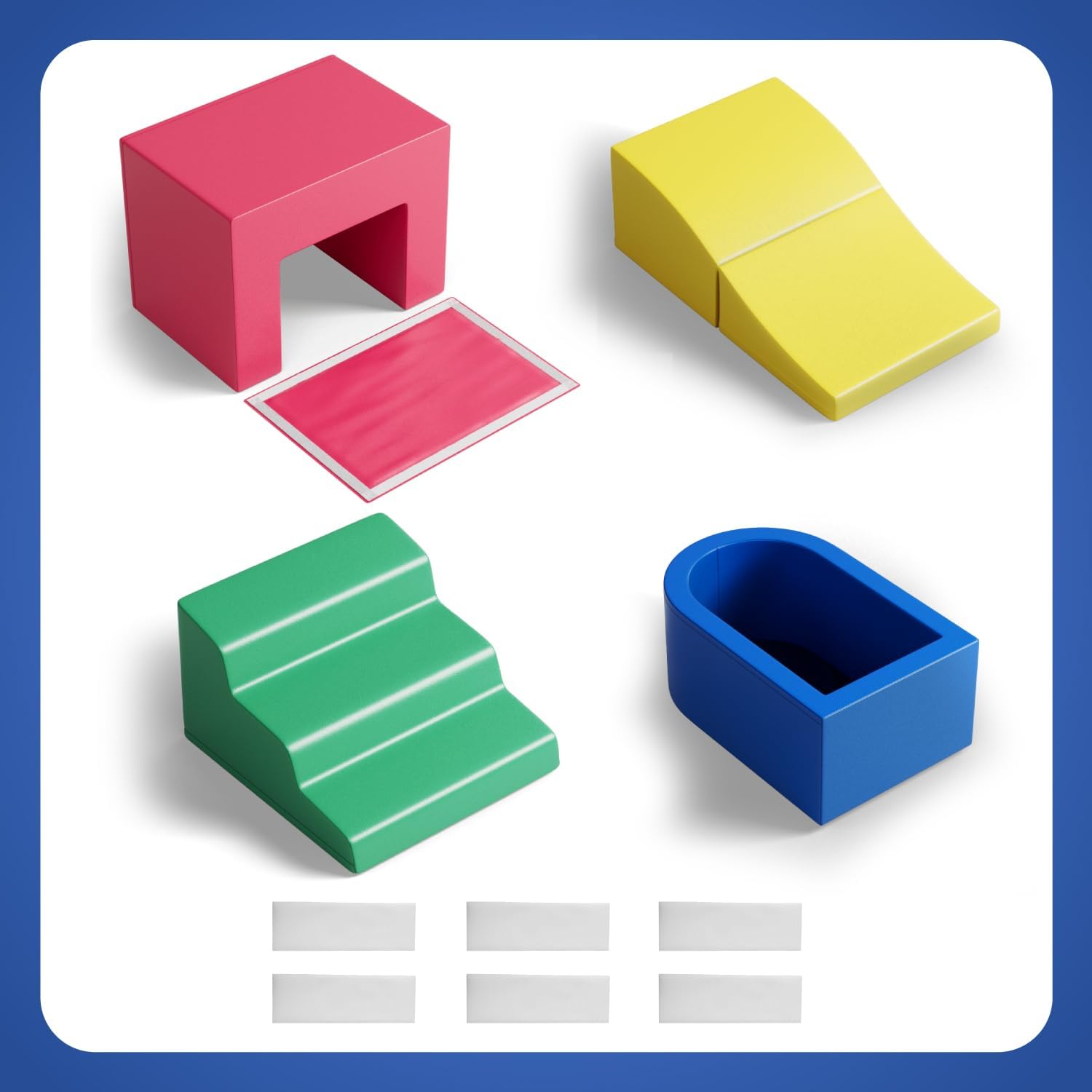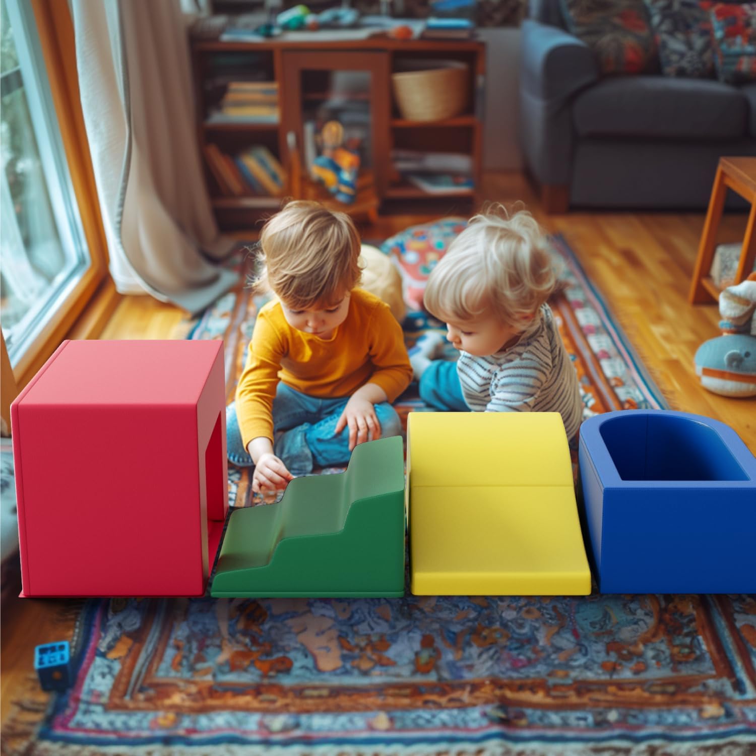 They are perfect for indoor activities and they are easy to clean if they get dirty. The set includes 4 pieces, providing a variety of options for building, climbing, and playing. The blocks are made from high-quality foam. The foam is easy to clean and maintain.