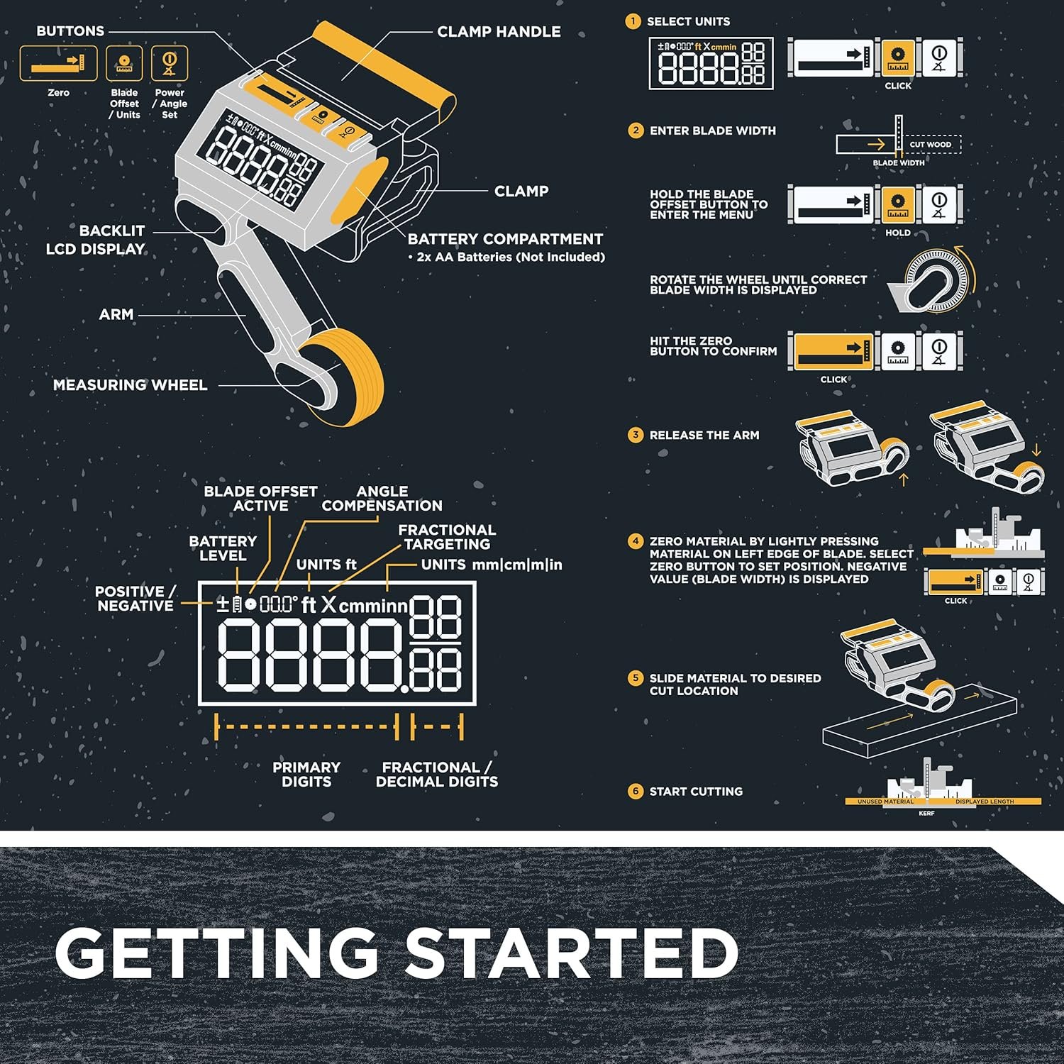 • A Better Way To Measure – The M1 Caliber is a fully integrated, patent-pending, measuring tool that clamps to almost any kind of saw fence and outputs measurements of materials slid underneath its wheel on a large, backlit, LCD screen