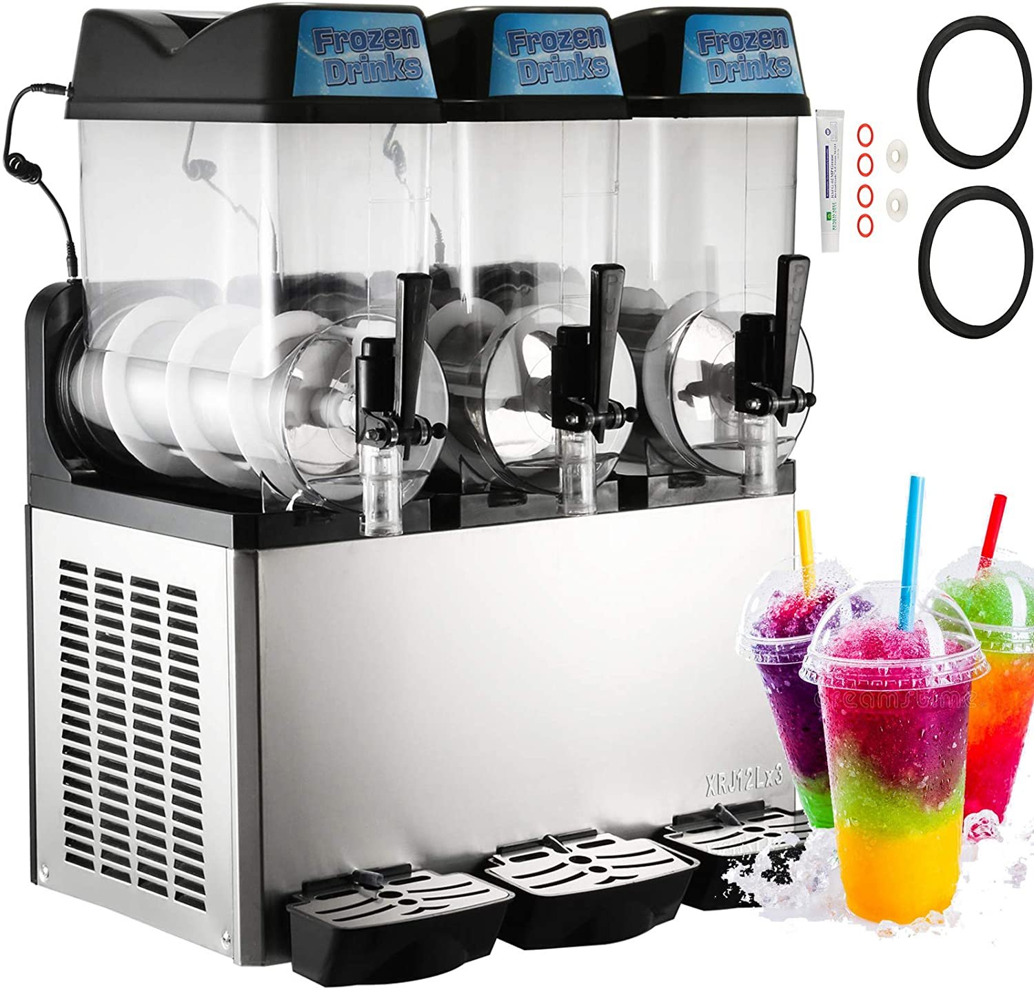 - ??The Parameters of Slush Machine??Large Capacity:15Lx3 tanks;Input voltage: 110V-130V AC;Frequency: 50-60Hz; Cold Power: 500W; Cold-beverage temperature: -2??~-3??; Slush comes during 30min-45min.