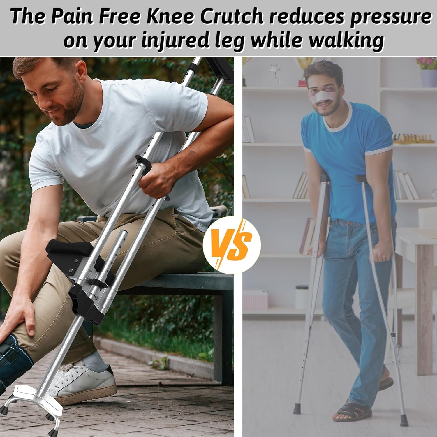 - Sturdy and Reliable Structure: The Pain Free Knee Crutch is made of high-quality, thickened aluminum alloy with an oxidation finish, capable of supporting up to 300 lbs. It offers confident mobility with a lightweight design.