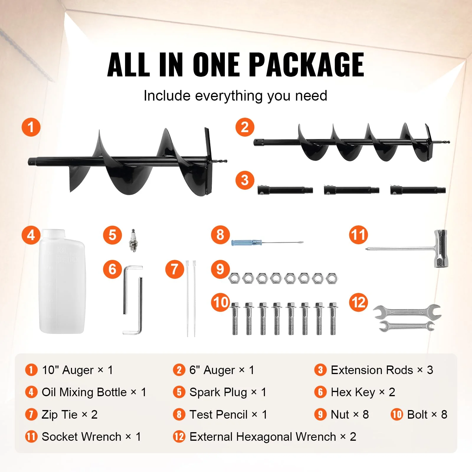 - Complete Accessories: We ship the main unit and accessories together. It includes 3 extension poles, 2 drill bits, a spark plug, an oil can, and a tool kit. The product is EPA-certified for environmental protection, ensuring its safety and eco-friendliness.