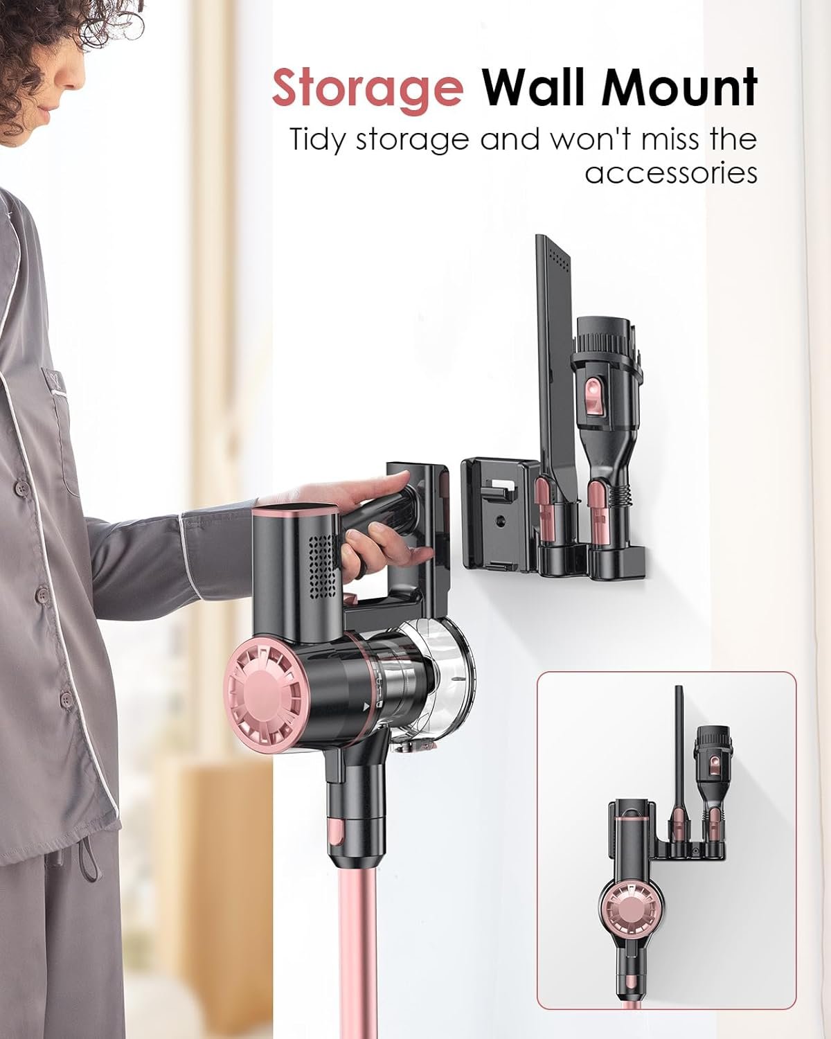 - ??No Hassle, Easy to Use??The hardwood floor vacuum brush head can rotate anytime between 90?? and 180??; the LED light is perfect for cleaning crumbs, dust, and pet hair in the dark; You can select suction mode or check the battery level on the LED smart display. Also with wall mounted storage rack, no need to worry about lost accessories.
