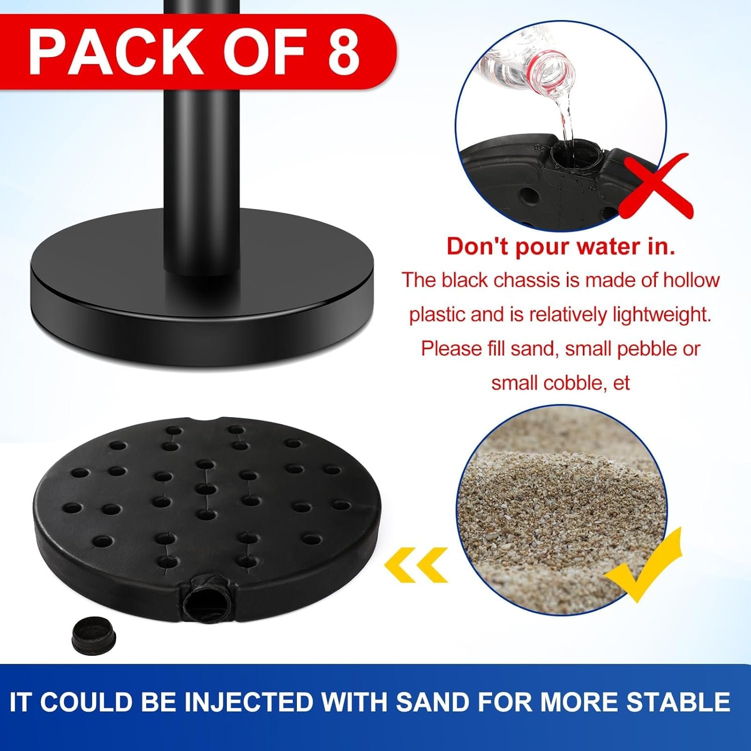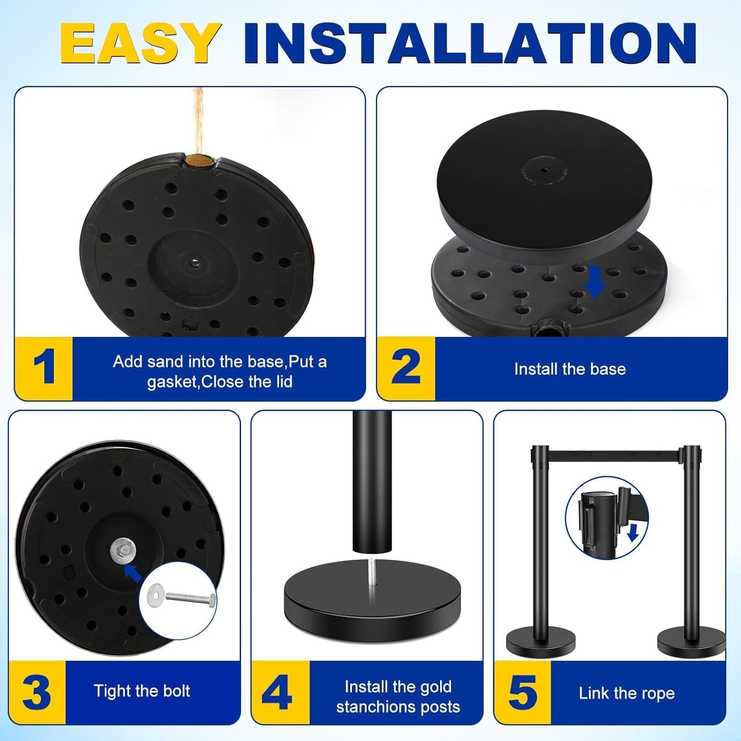 - Stable Base:Our stanchions base are strong enough to withstand wind and crowds, stable and reliable, ensuring that the posts are not easy to move and topple over. No skid rubber base ensures your Stanchion stays where you put it without sliding or falling over.