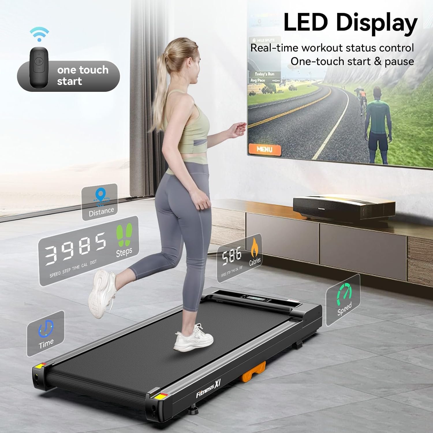 - Comprehensive LED Display: The walking pad tracks your speed, time, distance, calories, and steps with a clear LED display. The step count is calculated using gravity sensing technology in the walking pad, ensuring precise tracking. It is perfect for monitoring your progress in your home gym. Add this feature-rich treadmill to your fitness routine.