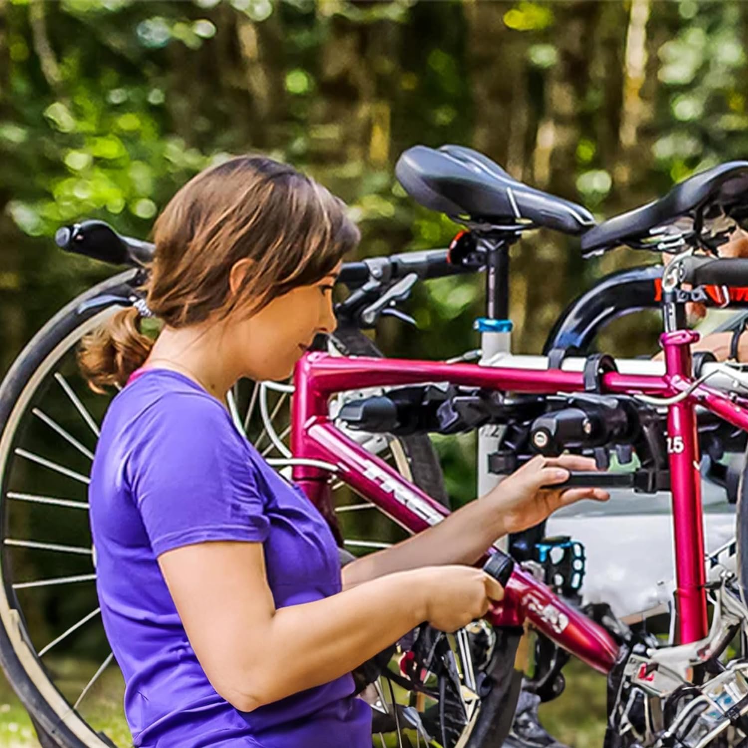 - SECURE AND STABLE TRANSPORT: Equipped with a robust locking system and sturdy mounting, this rack keeps your bikes safe and stable during travel, minimizing movement and potential damage