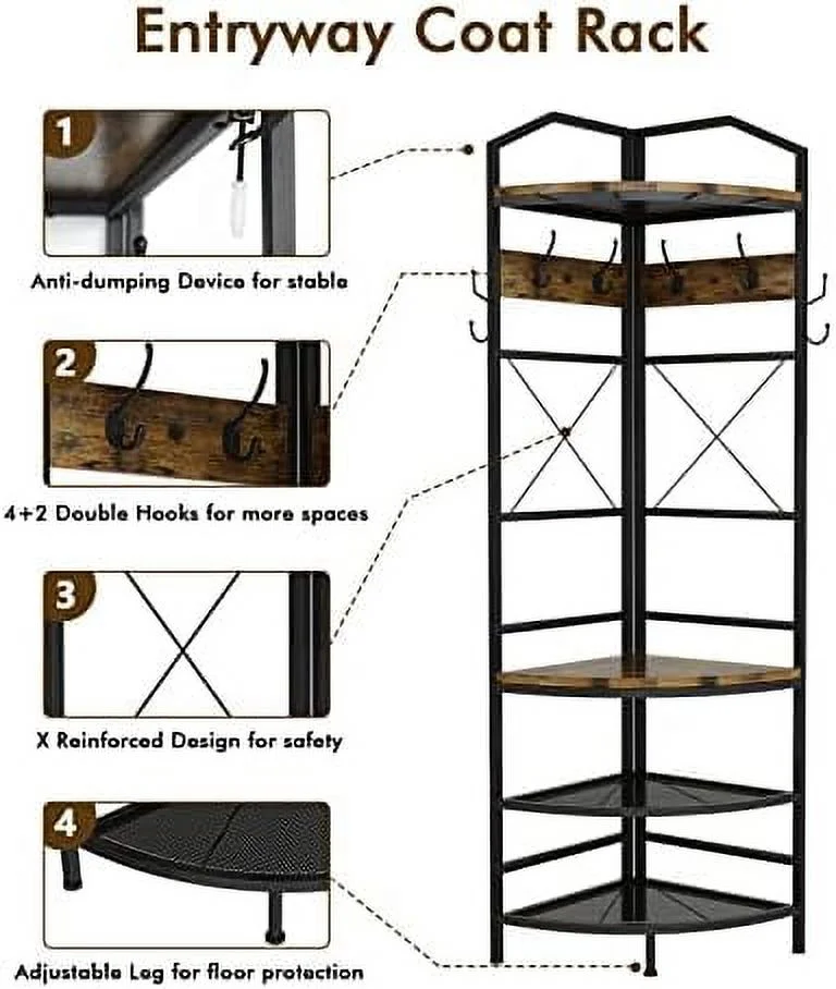Mdf [Multi-Functional – Entryway Coat Rack]: Are you looking for practical hall tree to put in your entrance? This 3 in 1 hall tree is suitable, which combines with shoe rack, top and coat rack. Bottom for shoes(5-6pairs), top for hats and scarf, photos, hooks for keys and umbrella, very convenient to put things when guests coming. [Space Saving – Entryway Coat Rack]: This corner coat rack provides an perfect structure for creating extra to live. Hall tree with design sector structure, fits very well in small spaces, not matter put one in corner or combine two in entryway, all easy to and maximize your limited space. [Industrial & Vintage – Entryway Coat Rack]: Entryway cloth and shoe rack made of rustic brown MDF board and black metal mesh , it is very and premium to use in long time, perfect complement to matches your industrial or farmhouse . Suitable to be put in entryway, hall, foyer, entrance, hallway, bedroom, mudroom or office etc. [Stable – Entryway Coat Rack]: Consider safty using experience, this corner cloth rack special design two anti-toppling screws, you can install them at the hidden space. Except that, entryway organizer also design with 3 adjustable legs, which make it can free-stand stable on uneven ground, protect your floor. [Easy to Assemble – Entryway Coat Rack]: With easy-to-understand manuels, you can quickly install this hall tree with in 20-30mins. Its deminsions 17.72″*17.72″*72.05″(L*W*H), Whole entryway coat rack shoe bench can load weight 120lbs.